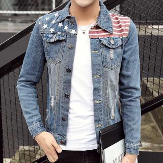 Download Now Busana Musim Semi Model Baru Jeket Denim Pria Kerah Turndown Kepribadian Lengan Panjang Tren Bersablon Baju Denim Berlubang Dipasang Casual JaketModel Jaket Denim Pria HD Terbaru
